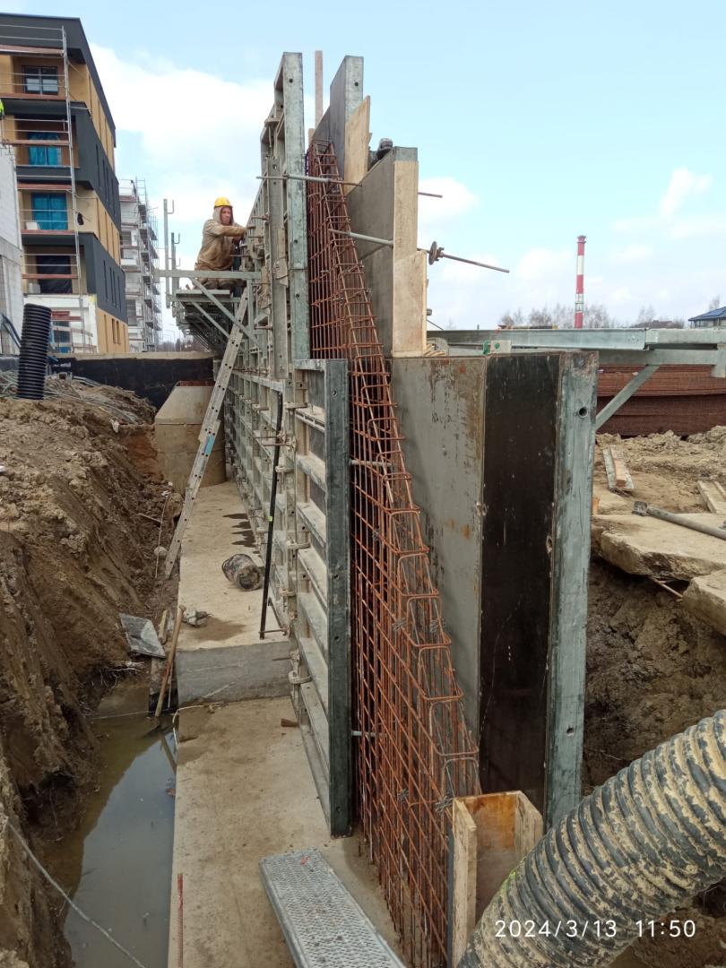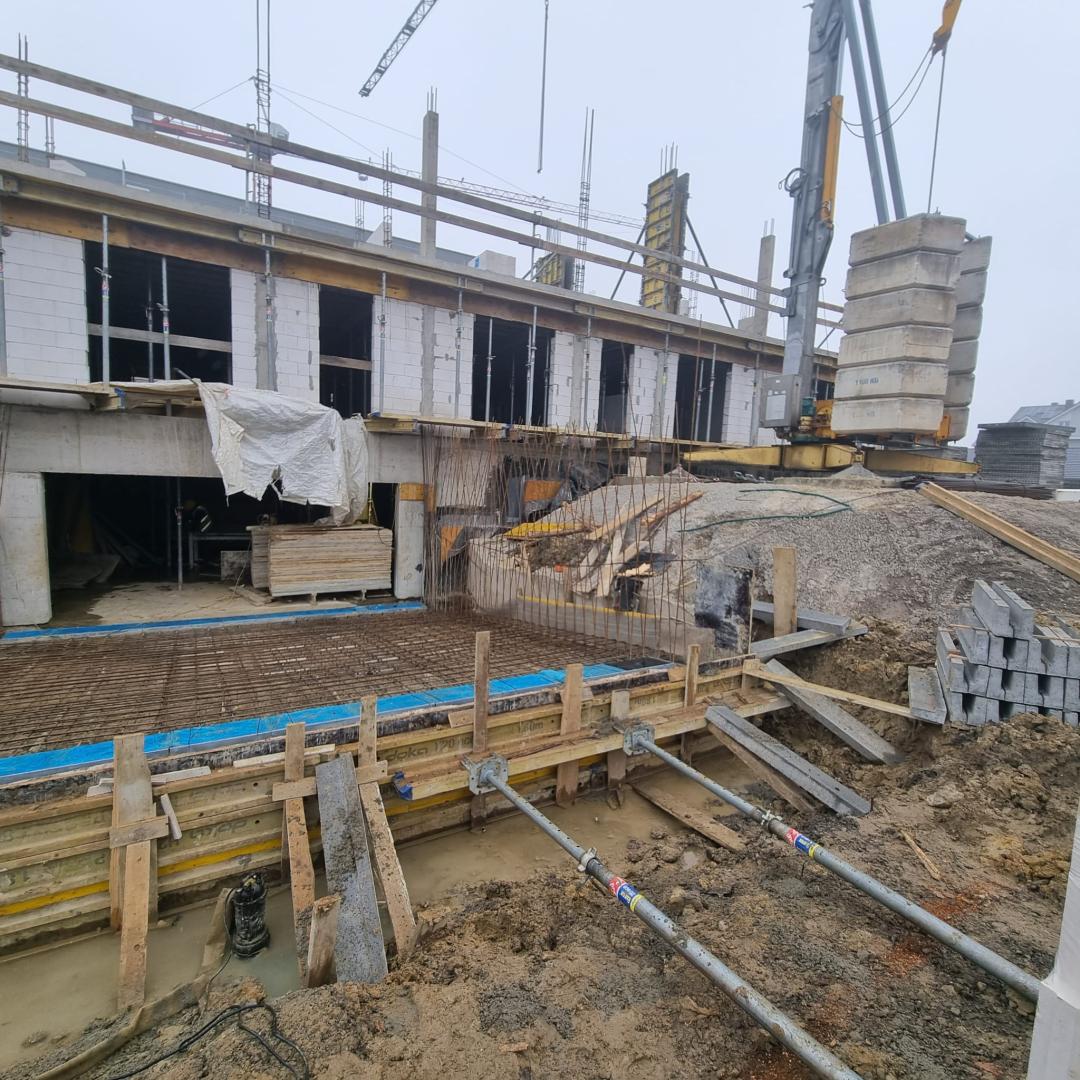 Obecnie jako generalny wykonawca realizuję inwestycję budowy Przychodni Lekarskiej w Bolesławcu. Zabudowa częściowo plombowa, budynek z pięcioma kondygnacjami z koniecznością wykonania zabezpieczenia wykopu w postaci ścianki berlińskiej. Obiekt o powierzchni około 1000 m2 i wysokości ponad 16m.